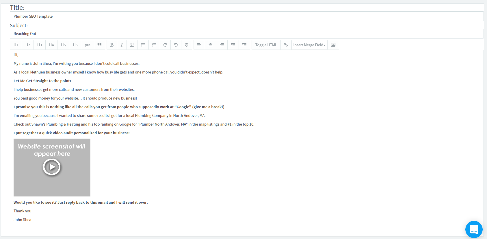 The idea here is you can tell prospects that you have created a video audit for their business and use this to gauge interest before putting the time into actually creating a video audit. This is an awesome way to generate more interest when sending out cold emails.